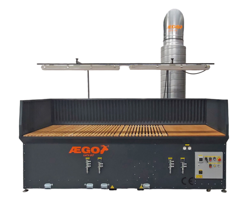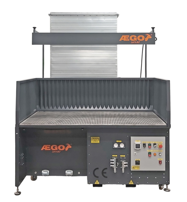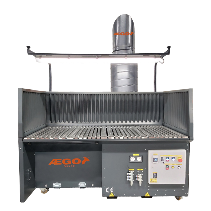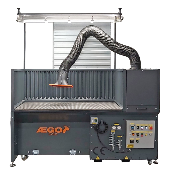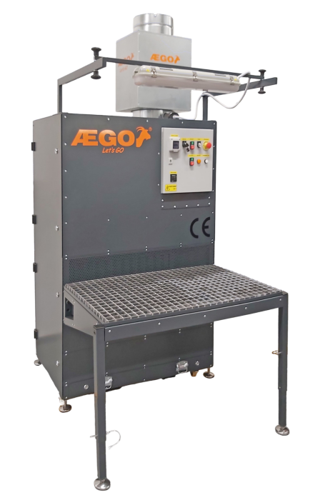 Model: AEGO-1200 industrial workstation with dust extraction system